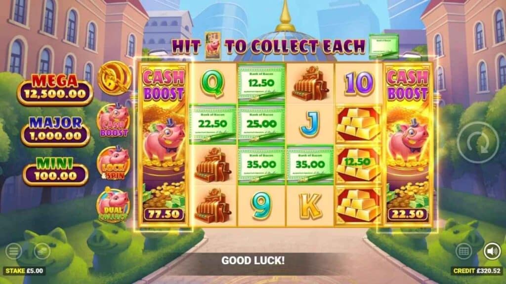 Det är dags att ta sönder spargrisen! I Bankin’ Bacon får du en hel del överraskningar, alla med fokus runt en spargris. Spelplanen är 6×4 med 4096 vinstsätt. Du kommer att möta en hel del bonusar och free spins som adderar det där extra till din spelupplevelse. Lyckas du få upp spargrisen själv på skärmen, blir du belönad med extra bonusar som kan förändra ditt spel. Den snygga designen och de mångsidiga funktionerna gör detta spel från Blueprint Gaming till en underhållande upplevelse.