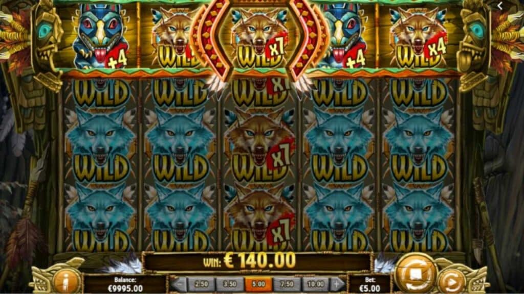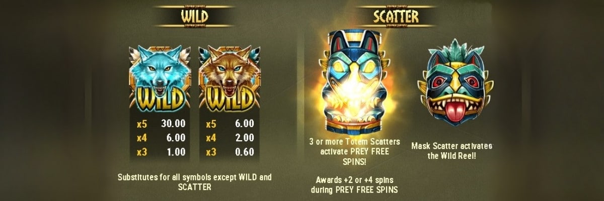 Den bruna vargen är spelets vanliga wildsymbol. Som vanligt kan den ersätta alla andra symboler utom scattersymboler och andra wilds. Som du ser på bilden betalar den också ut vinster i sig självt.