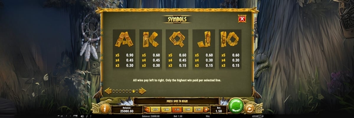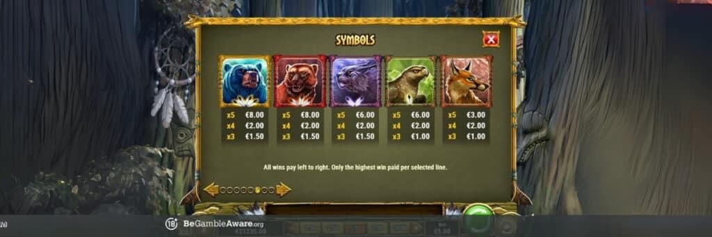 De högt betalande symbolerna är en räv, örn, lodjur, järv och svartbjörn. Här vinner du mellan 6 och 16 gånger insatsen för en vinst med 5 symboler.