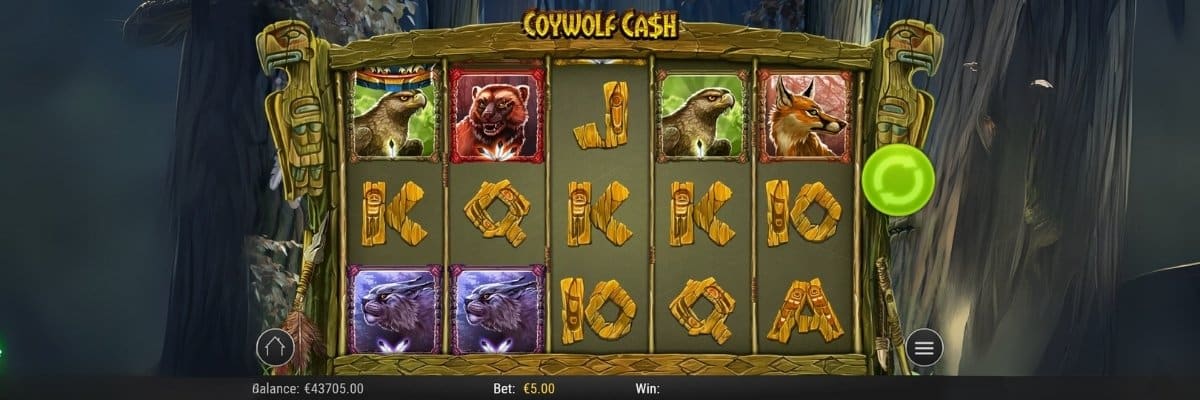 Coywolf Cash är en videoslot från svenska Play’n Go med 5 hjul, 3 rader och 50 fasta vinstlinjer. Du kan spela för 1 krona och upp till 500 kronor per spin (där vi testade spelet). Du behöver få upp minst tre av samma symbol, eller tillsammans med en wild, längs en vinstlinje för att få en vinst. Det finns också ett horisontellt hjul som dyker upp när du landar en scatter-mask på mittenhjulen – mer om det längre ner.