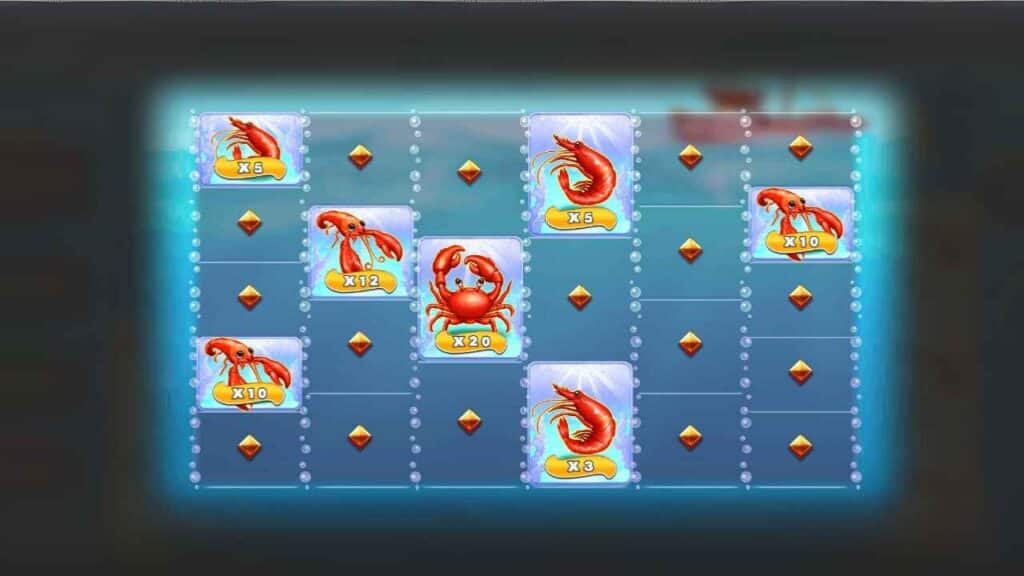 Innan du börjar snurra ska du välja 5 kräftdjur i bonusspelet ”Pick a Crustacean” De 5 valen ger dig olika uppgraderingar:
