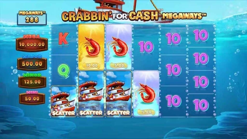 Fiskebåten är scattersymbol i Crabbin’ For Cash Megaways. Få upp minst 3 av dem för att vinna inträde till free spins-rundan – som mest kan du få hela 50 gratis spins med lite tur – eller mycket tur, rättare sagt.