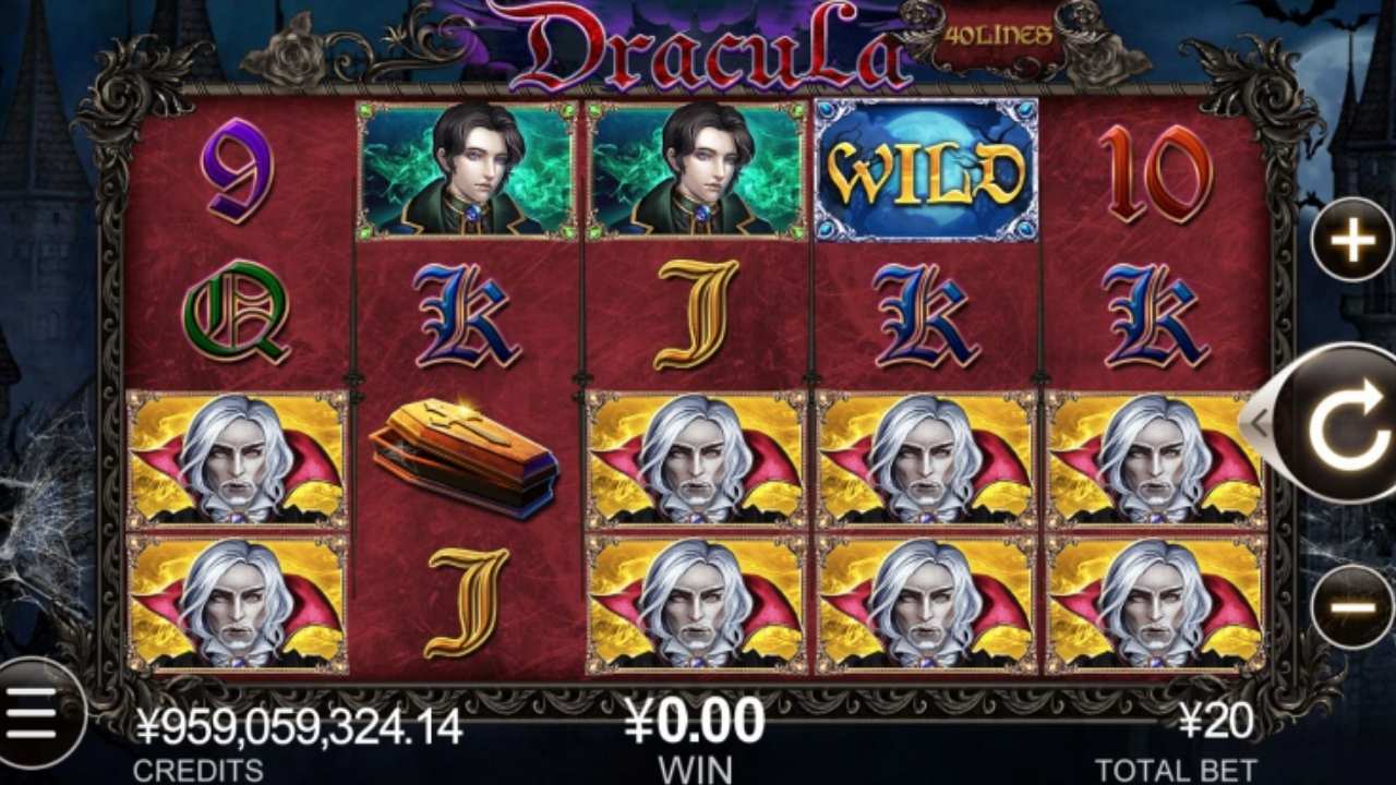 Dracula är en videoslot från 2015 som spelas med 5 hjul, 4 rader och 40 fasta vinstlinjer. Du kan spela i mobilen såväl som på dator och surfplatta. 2 kronor är lägsta insats per snurr, men du kan spela för så mycket som 2 000 kr per snurr om du vill. Ändra insats med hjälp av knapparna Nivå och Myntvärde.