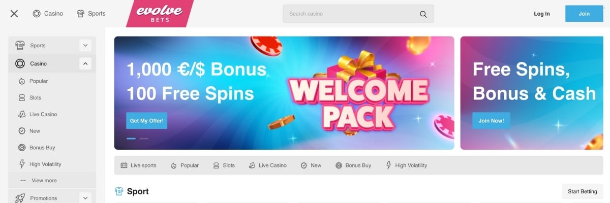 - Välkomstbonus: Kunder som kan öppna ett konto hos Evolve Casino har en rejäl välkomstbonus att se fram emot. Det handlar om upp till €1000 och 100 free spins. Kom bara ihåg att läsa igenom alla regler och villkor innan du tar del av bonusen för att du ska vara medveten om vad som gäller.