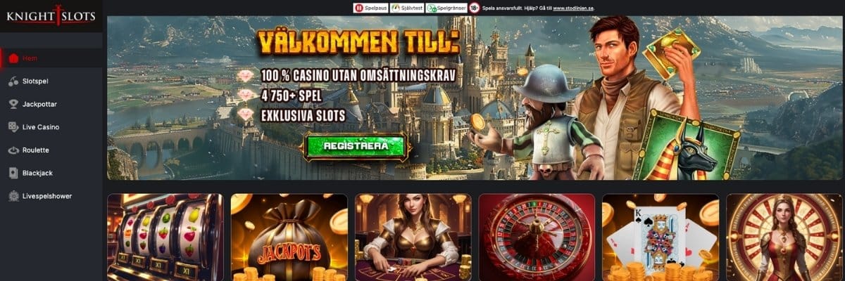 Precis som namnet avslöjar fokuserar Knightslots online casinon på att locka en målgrupp som älskar spelautomater i massor. Dessvärre erbjuder inte casinot spel på odds, men kompletterar det hela med ett trevligt live casino.