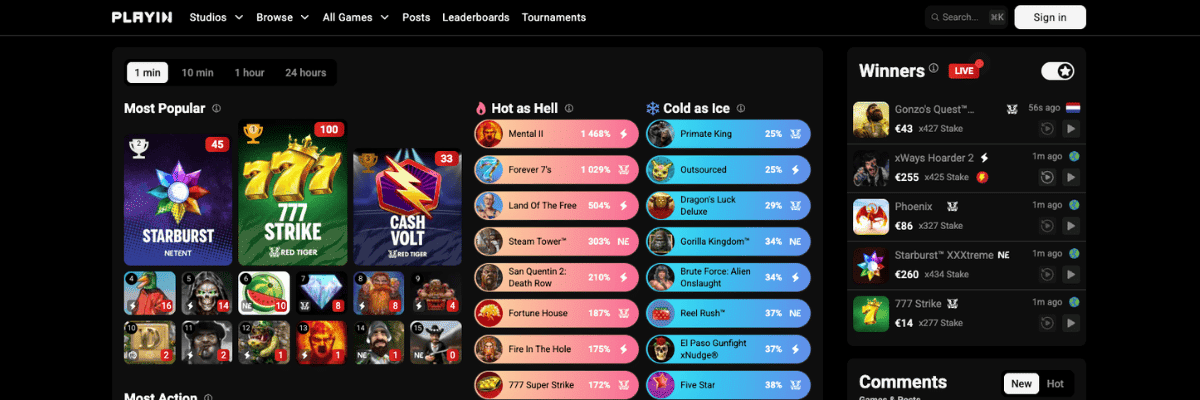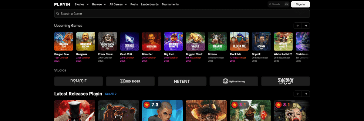 Genom Playin får spelare tillgång till ett brett utbud av spel, tävlingar och resurser som är utformade för att skapa en mer interaktiv spelupplevelse. Förutom traditionella casinospel erbjuder man även turneringar, nyheter, guider och statistik som kan vara till hjälp för både nybörjare och mer erfarna spelare.