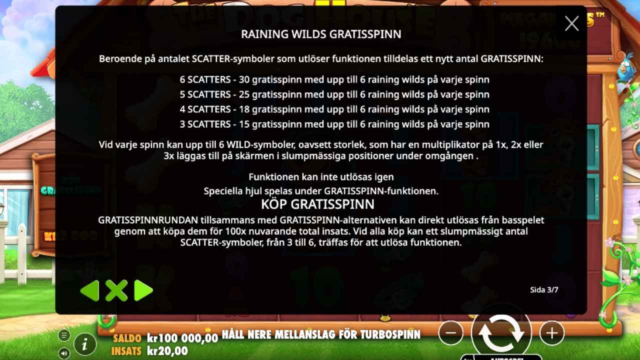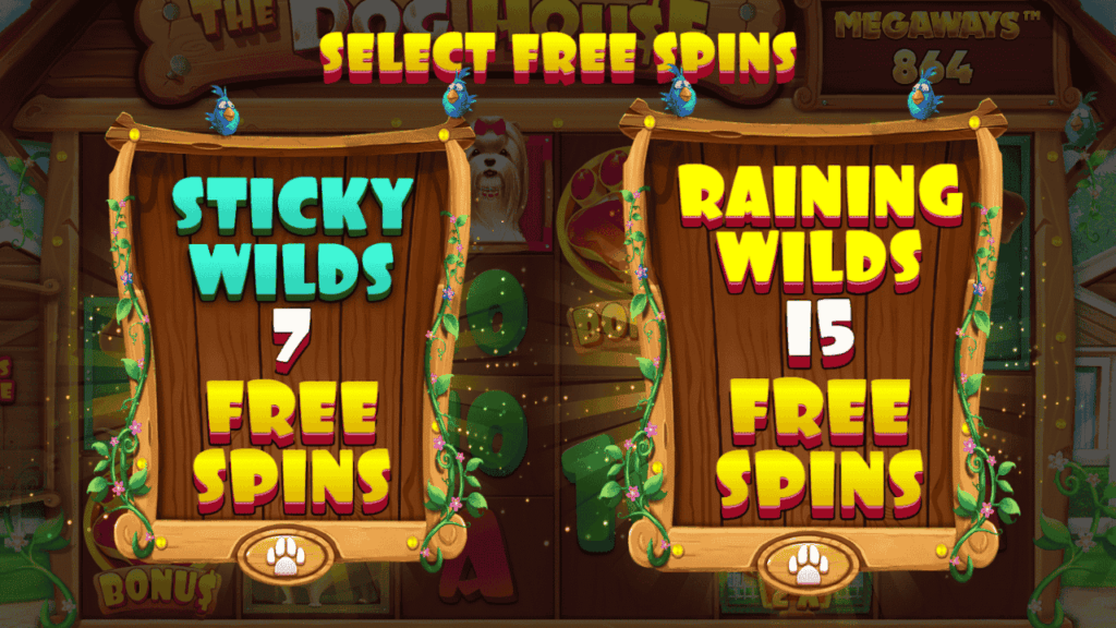 Förutom Megaways och wilds, som vi redan pratat om, finns det ett par bonusfunktioner i The Dog House Megaways – Free spins i två varianter och möjligheten att köpa bonusen.