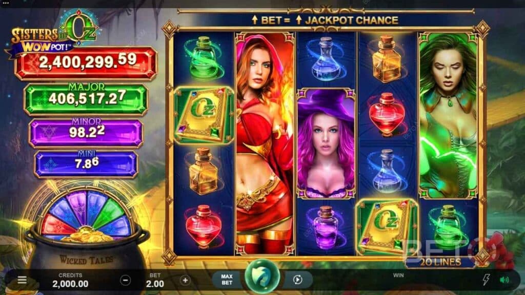 Sisters of Oz från Triple Edge är en vacker spelautomat, inte bara för de stiliga damernas skull. Här befinner vi oss på ”Yellow Brick Road” där vi spelar med free spins, megasymboler och staplade symboler. Maxvinst: 3 600 x insatsen.